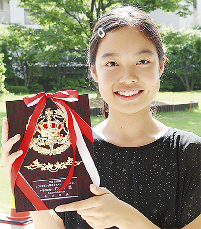 夏希さんは「国際平和という大きな話ではなく、私の身近なことを題材にし、平和の大切さを訴えました」とし、「学校代表となるときが一番緊張しました。本選では友達がたくさん応援に来てくれ、リラックスしてやれました。こんなに大きな賞が取れるとは思ってもいなかったので嬉しかったです。将来は小学校の先生になることが夢です」と笑顔を見せていた。