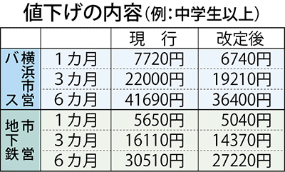横浜市交通局は、来春から横浜市営バス・地下鉄の通学定期乗車券を値下げすると先ごろ、明らかにした。
