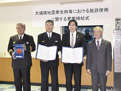 戸塚消防署(名取正暁署長)は11月30日、セントラルフィットネスクラブ東戸塚(小山祐宇(ゆきひろ)店長)とスポーツクラブNAS戸塚(齋藤志帆支配人)とで、区内初の災害時に各施設のプールを消火用水として、また駐車場を消防活動用地として使用する協定を結んだ。