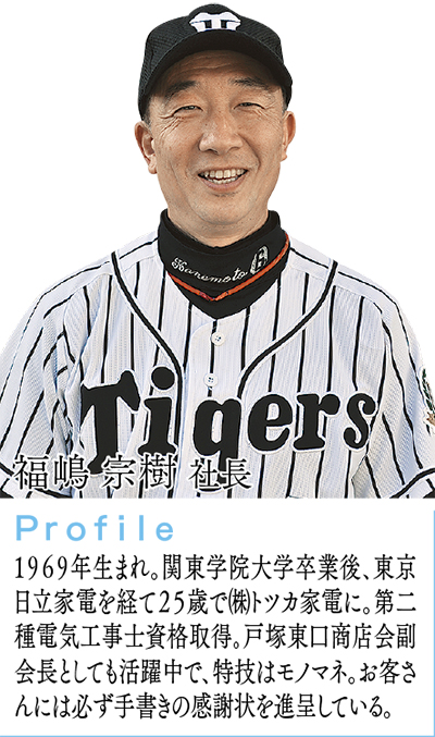 近頃、故障していないのに家電品を買い替える人が多い――。「当店に来て頂ければ、簡単なアドバイスか手直しで再び使用できるように」と話すのは(株)トツカ家電の福嶋宗樹社長。家電は”ただ買って終わりの置き物”ではなく、”買ったら有効に使うもの”だとし、「生活する上で家電は切り離せないもの。だからこそ、お客様が困った際の身近な相談窓口でありたい」とにこやかに語る。尚かつ同店は、全国展開しているアトム電器チェーンに加盟しており「定番商品は量販店の店頭チラシ価格並み」と手頃。また、購入者が”100%良い状態”で使えるよう、常に丁寧で正確な工事も心掛けている。
