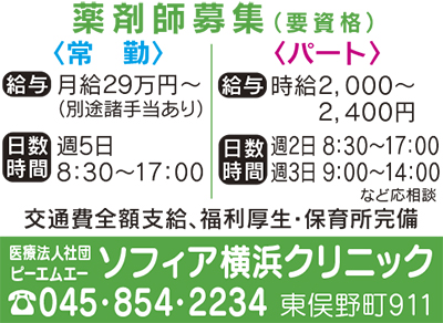 東俣野町にあるソフィア横浜クリニックでは、現在、常勤またはパートの薬剤師を募集している。