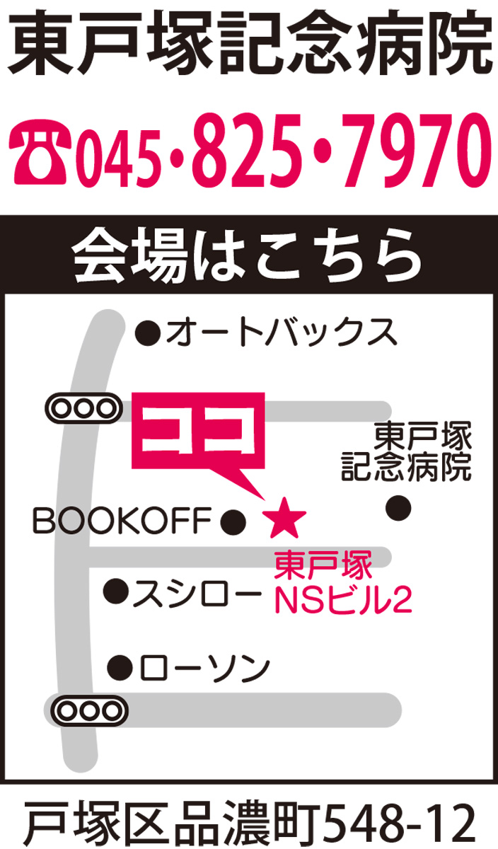 東戸塚記念病院主催の公開講座が8月23日(木)、東戸塚NSビル2で行われる。午後2時〜。無料。
