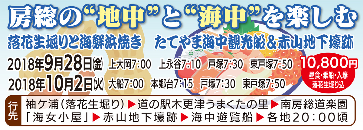地元発着バスツアーでおなじみの「旅人(たびゅ〜と)」が、「房総の”地中”と”海中”を楽しむ 落花生堀りと海鮮浜焼き」のツアーを企画した。日程は9月28日(金)と10月2日(火)。