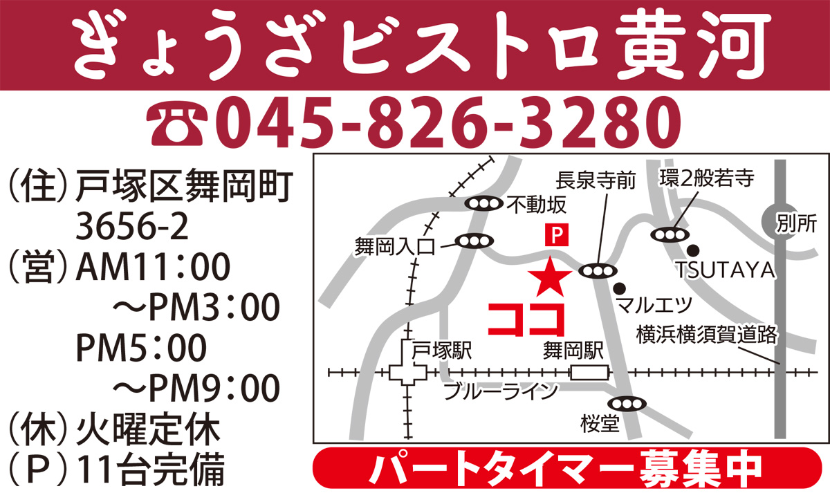 かつて多世代に愛されてきたレストランがこのほど、戸塚区舞岡町で四半世紀ぶりに「復活」した。その名は「ぎょうざビストロ黄河」。8月のオープン以来、区内外からじつに多くの人が足を運び、舌鼓を打っている。