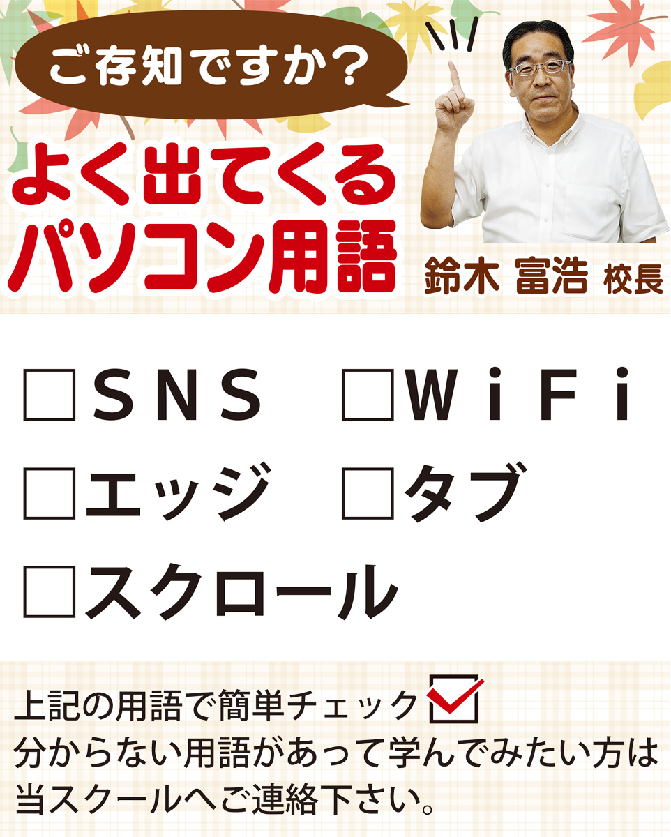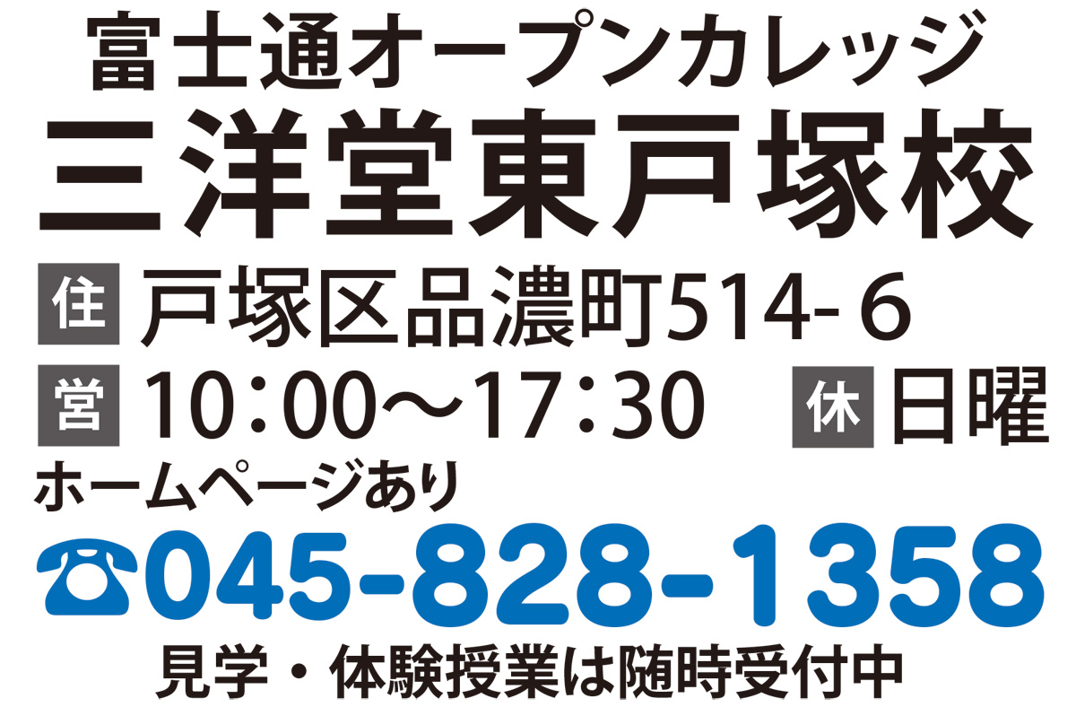 東戸塚駅徒歩3分にある富士通オープンカレッジ三洋堂東戸塚校は今秋、そんなシニアにピッタリの詳しく・丁寧にパソコン指導が受けられる初心者向けクラスをリクエストにより水曜、木曜日の13時からの授業を新設(詳細は問合わせを)。