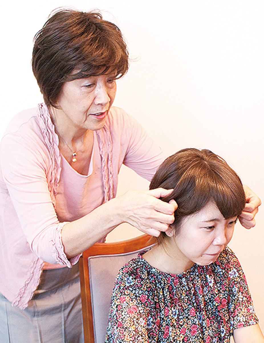 「脱毛した状態で購入店舗へメンテナンスに行くのはつらい」と闘病時を振り返る武田さん。そんな負担を軽減しようと、同社のウィッグは自分で簡単にサイズ調整や手入れができる。素材は形状記憶を施した最高級人工毛100%。馴染みが良く、半永久的にスタイルがキープされる。薄毛・おしゃれ用にも対応しているので、特別な日のアレンジや白髪隠しにも最適だ。