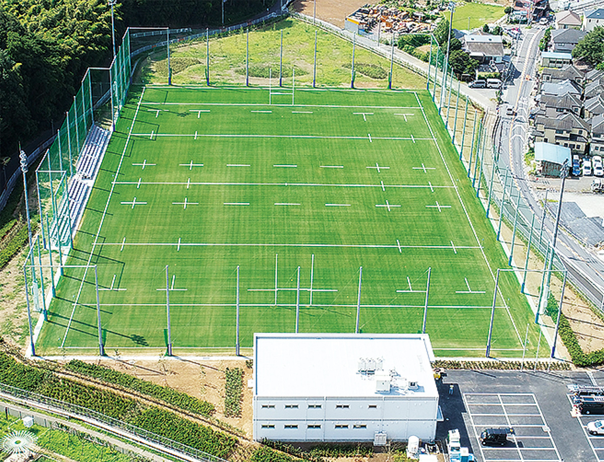 小雀町にある小雀建設(株)(小泉和雄社長)がこのほど、都筑区に「荏田南町多目的グラウンド」(荏田南町741の1)を建設した。面積は1万528平方メートル、一面に人工芝が敷かれ、ラグビーやサッカーに適した仕様だ。敷地内には300人以上を収容する観覧席やクラブハウスも併設。今後は清水建設(株)(東京都)が利用し、運動部の練習場として活用する方針だ。