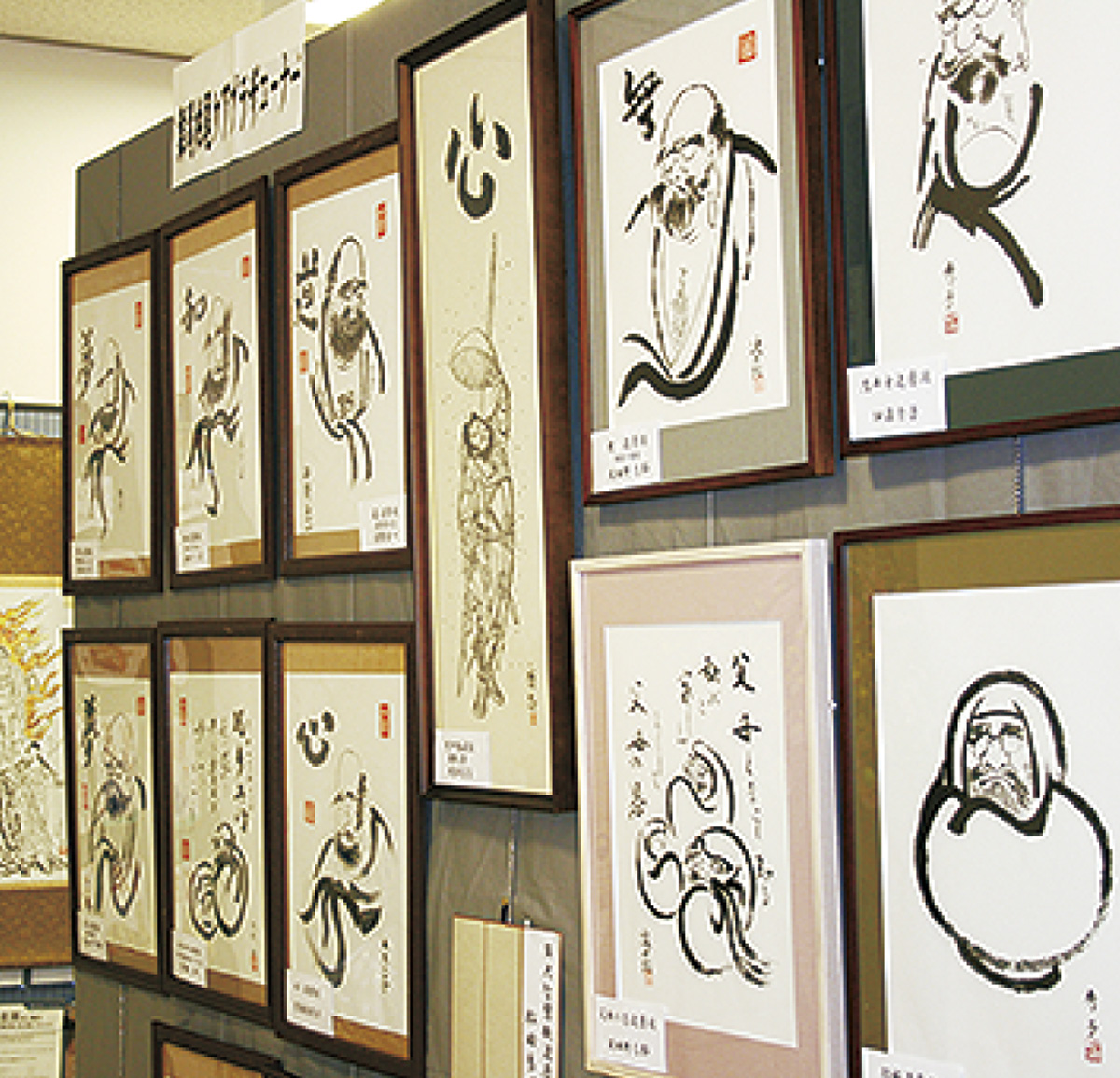 期間中は、達磨画はもちろん、龍神画、仏画、色彩画なども展示。会の関係者のほか、同行利用客も足を止め、「素晴らしい」「味わい深い」などの声があがっていた。