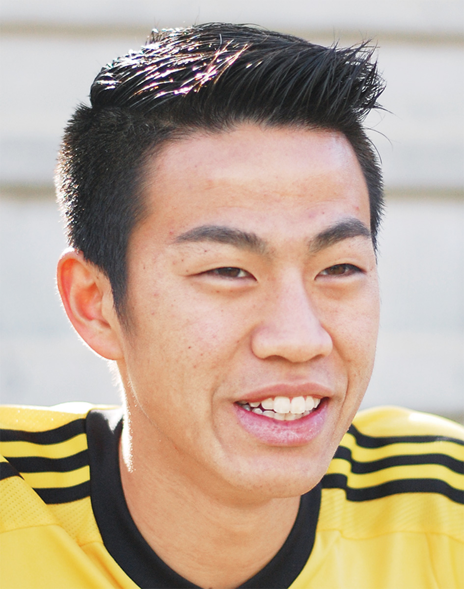 ○…明治学院大学体育会サッカー部初のJリーガーとして、今季から福岡県北九州市をホームタウンとするギラヴァンツ北九州に入団。「プロ生活を早くスタートさせたい。開幕からレギュラーを獲得し、北九州市の方々や多くのチームサポーターに愛される選手になりたい」と憧れのプロサッカー選手を実現させた喜びが溢れ出る。