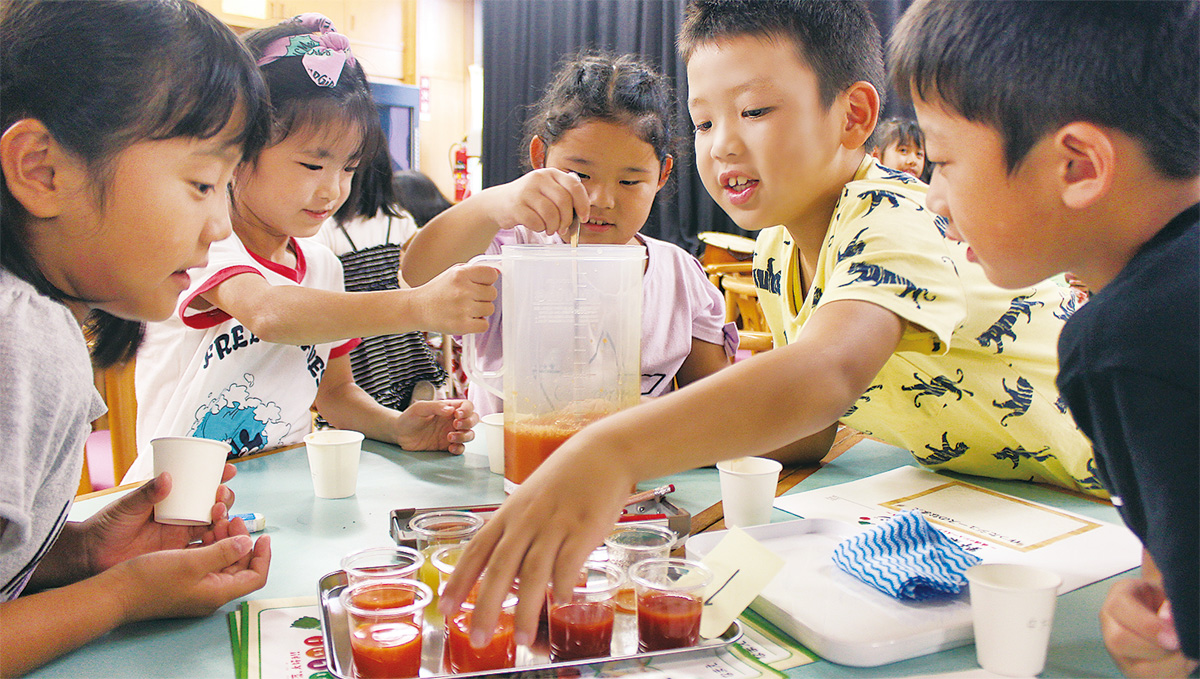 さらに、数種類の野菜ジュースをブレンドする「最強のジュースをつくろう」体験に挑戦。グループごとに協力しつつ味見をしながら理想の味をつくっていた。カゴメの担当者は「『必要だから食べましょう』ではなく、楽しみつつ野菜と仲良くなる機会にしてもらおうと企画した。学んだことを自宅で家族と話し、より野菜が好きになってもらえれば」と話した。
