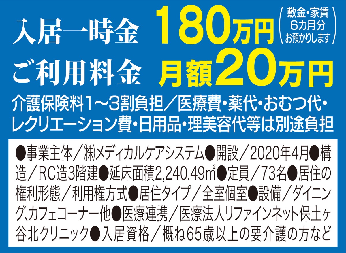 医療面では医療機関と密に連携を取り、医師が定期的に診療するほか、日中看護師が複数名常駐し毎日の健康管理も。月額利用料は低価格を実現。資料請求、相談は左記へ。お早めに。