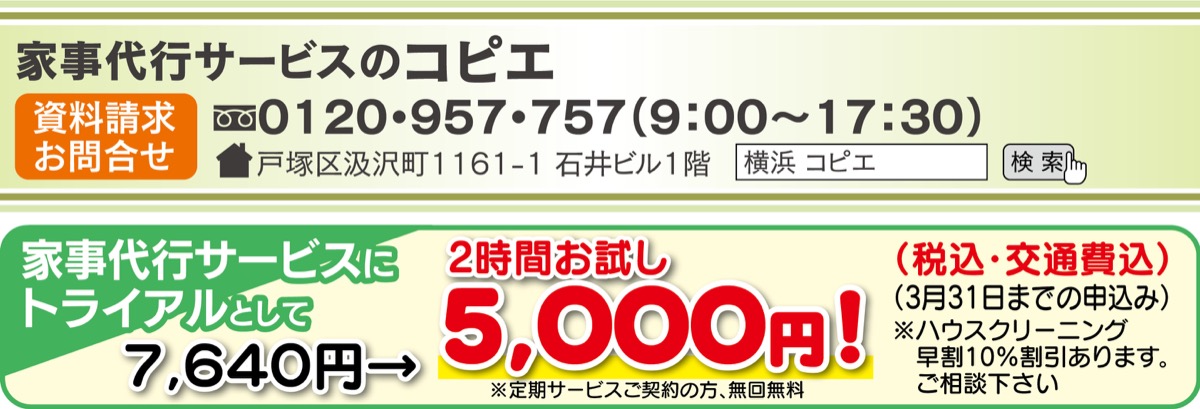 このほか、同社では庭の水やり、ゴミ分別、シッターサービスなど”家事全般”に対応(サービスは2時間7640円から・交通費別途一律970円)。また、エアコンなどの汚れを徹底的に奇麗にしてくれるハウスクリーニングサービスも取り扱う。
