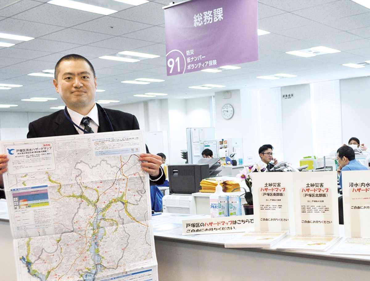 市はこのほど、洪水被害の危険エリアを示すハザードマップを6年ぶりに改訂し、現在対象世帯の約3万3千世帯に向け配布を行っている。想定される最大降雨量は改訂前と比べて300mm/日以上増え、広報等を担う戸塚区担当者は「これをきっかけにして防災意識をより高めてもらえれば」と話している。