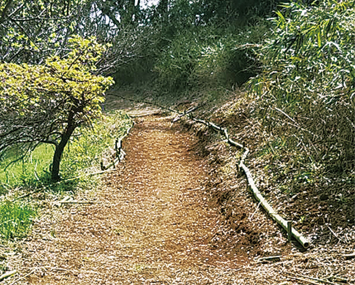 そんな中、同部の顧問である脇田浩介教諭が、敷地内にある雑木林に注目。野原や丘陵地、森林などに設定された長距離コースを走る陸上の種目「クロスカントリー」のコースをイメージし、一人で作業を始めた。同校の環境整備のボランティアに来ていた高橋さんが、脇田教諭の作業する姿を見て、取り組みに賛同。高橋さんの声掛けで集まったボランティアや同校の教諭など約30人が、3月中旬から約半月をかけてコースを完成させた。約300mにわたって雑木林の中や脇を通り、高低差のあるコースとなった。