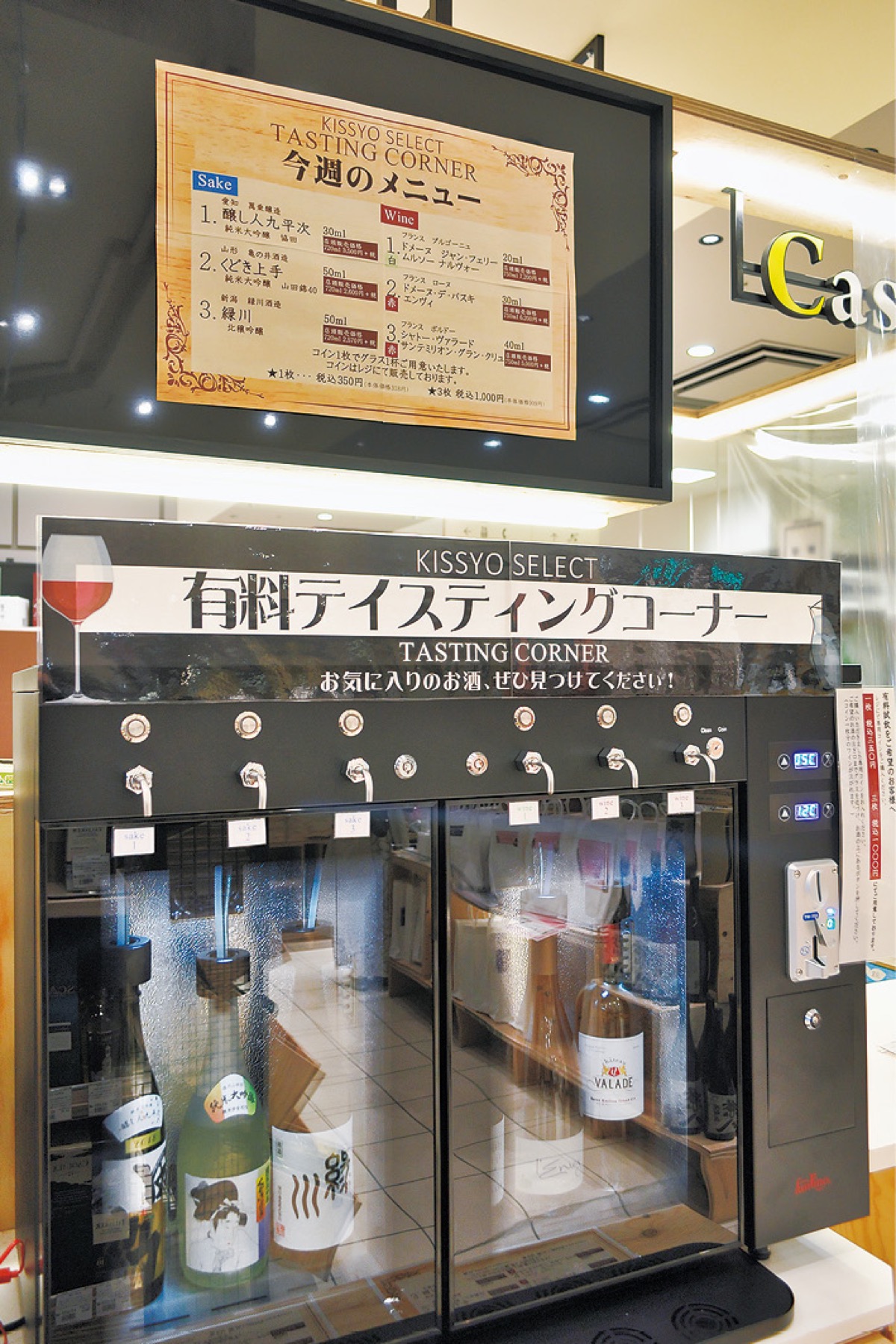 さらに同店では県内初というテイスティングマシンも導入。コインを入れると時季に応じた酒類が楽しめる。「簡易立ち飲みとして色々なお酒を楽しんで」と西嶋店長。