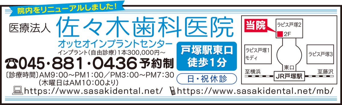 新型コロナウイルスの感染が続いている。戸塚駅東口そばにある『佐々木歯科医院』の佐々木院長は、「最近の研究報告で歯周病などの口腔疾患がウイルス感染症に影響があることがわかってきています」と話す。