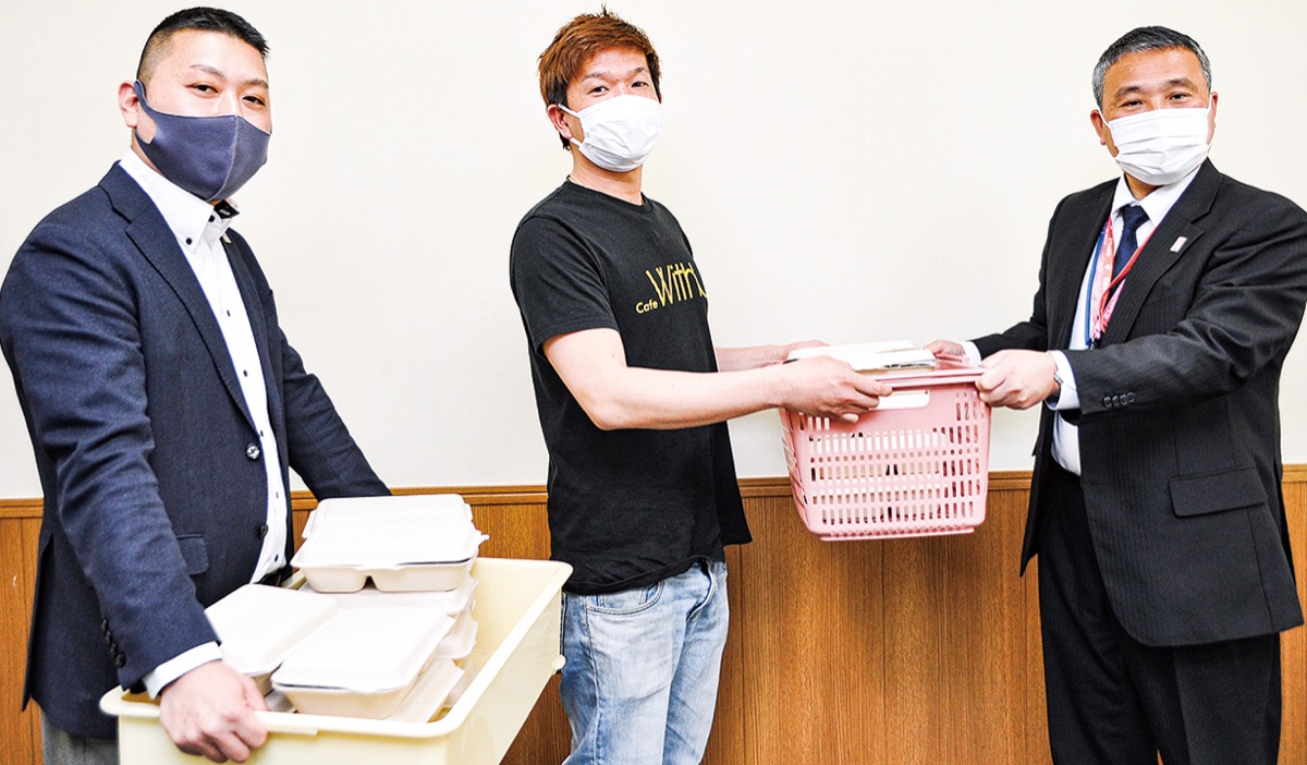 初日の1日には同社の十重田代表も共立病院の事務局に訪れ、本多哲也事務部長に22食のハンバーガーセットを手渡した。本多事務部長は「近隣の方から品物をもらうことも多く、力をいただけて大変ありがたい。地域医療に貢献できるよう努力していきたい」とコメント。井上さんは「本当に医療従事者の方の活躍には頭が下がる思い。皆さんは自分たちの仕事を誇りに感じてほしい。これで少しでも元気づけられたら」と話した。