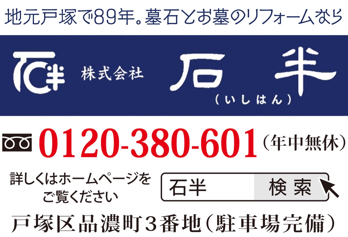 (株)石半は創業者の縄嶋半治氏の手により1932年に誕生した。鎌倉で石工職人として修業を積み、生まれ育った現在の地で独立した形となる。以来「石屋の半ちゃん」として親しまれ、平戸町や品濃町、妻の生家がある川上町などを中心に石工事を請け負ってきた。