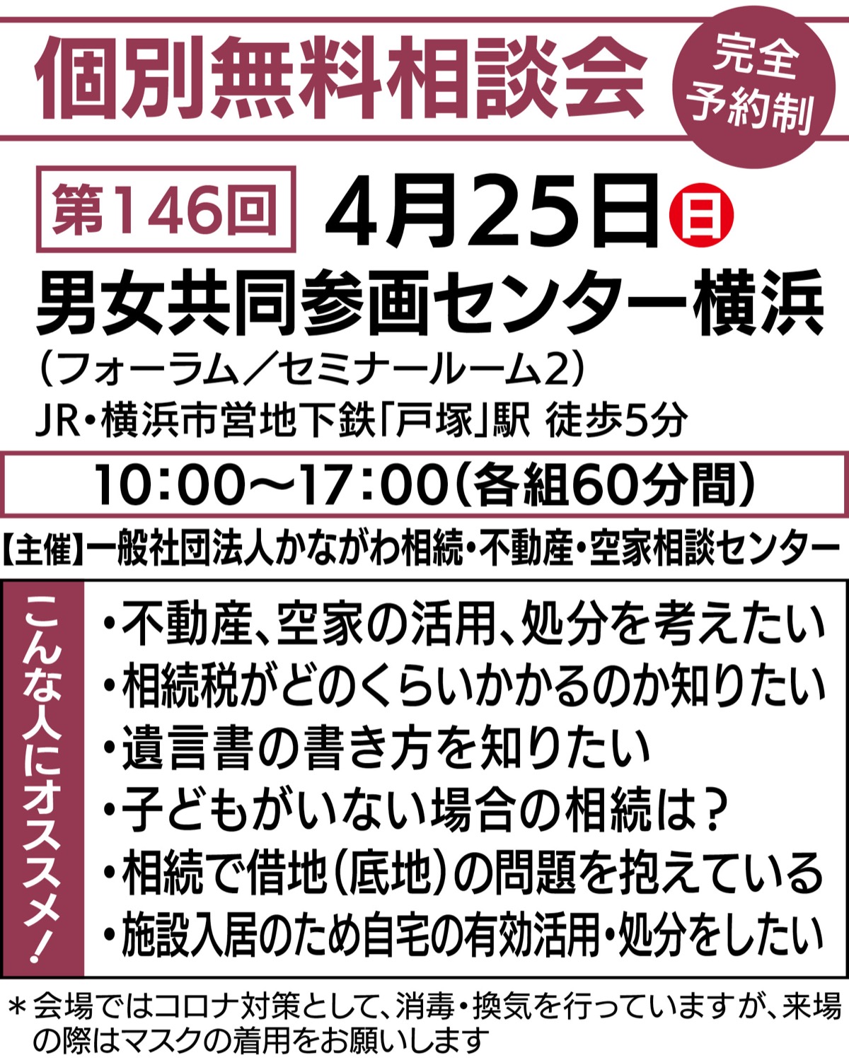 同法人は一般を対象にした個別の無料相談会を市内各地で定期的に開催しており、相続、不動産関係以外にも老後資金対策や高齢者施設への住み替えなど、最適かつ確実なアドバイスと迅速で丁寧な対応に定評がある。