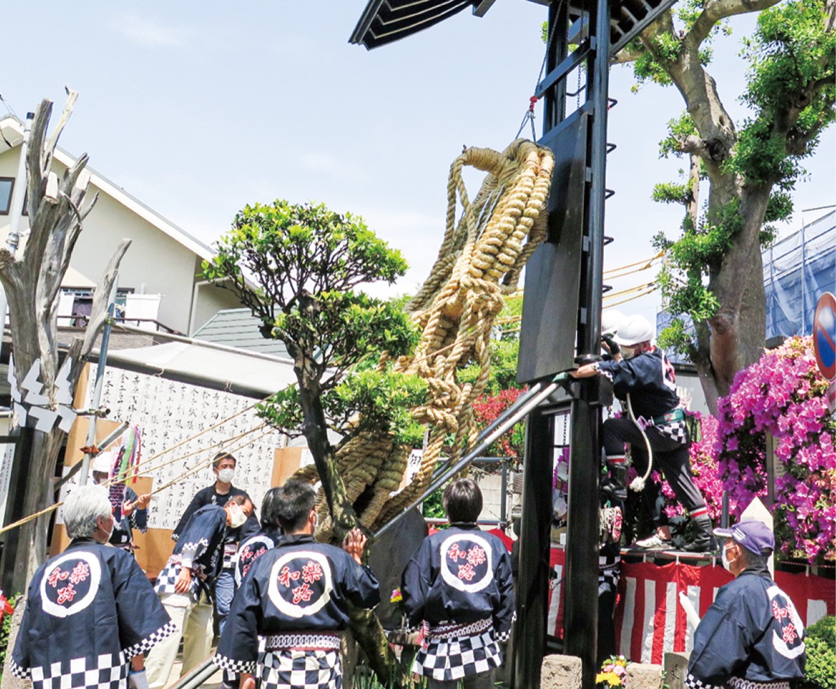 根本会長は「今年も石井さんのご厚意があって無事奉納できた。人が集まらないよう周知を控えたが、地域の子どもが手伝ってくれたりして嬉しかった」と話す。今後は会員らの意見をまとめ、これまでなかった掛替作業の手順書を作り、後世につないでいくという。