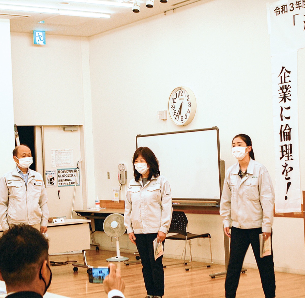 当日は(一社)倫理研究所の久万田昌弘さんが登壇したほか、山口木材(株)が倫理法人会推奨の朝礼を実演。同社の山口秀利社長は「毎日行うことで、社員の顔色の変化にも気づきやすくなった」とその効果について話しました。