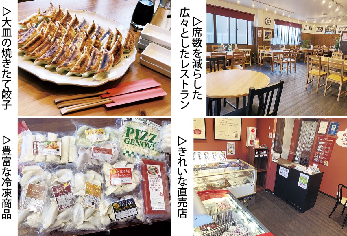 レストランでは定休日を1日追加。これはSDGsにもある「働きがいも経済成長も」の精神から。「地域の皆様と共に発展し続けるため、ご理解いただければ」と鈴木専務。「10分少々で焼き上げるテイクアウトの『焼きぎょうざ』も、どうぞお役立てください」