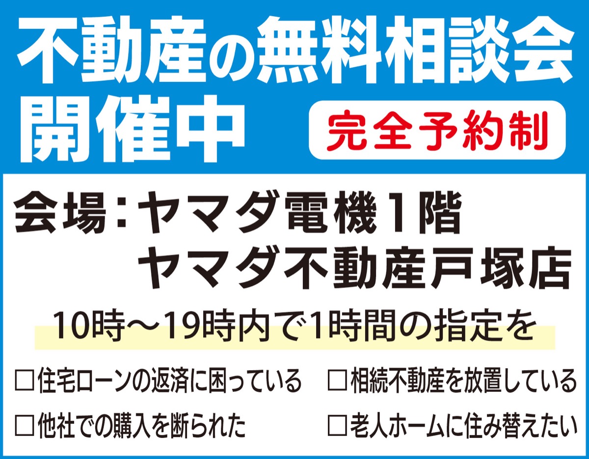 踊場駅目の前にあるヤマダ電機1階で、不動産の売却や購入などあらゆる悩みに対応する無料相談会が開かれている。地元会社が運営する開店2周年目の「ヤマダ不動産戸塚店」が担当する。