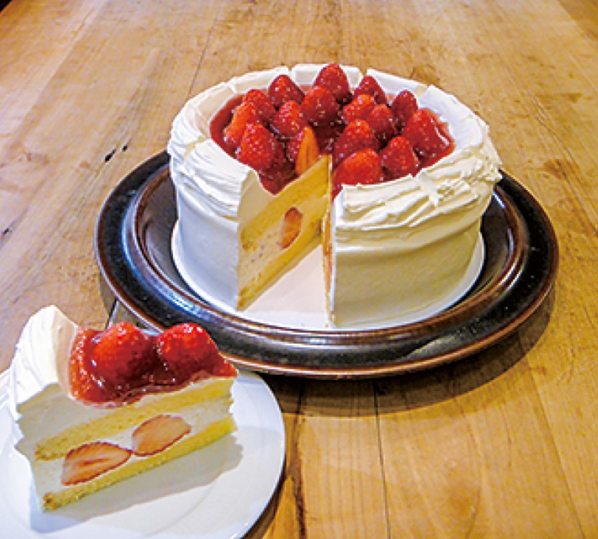 大粒のいちごを丸ごとサンドした贅沢な味わいのカナール自慢のケーキ