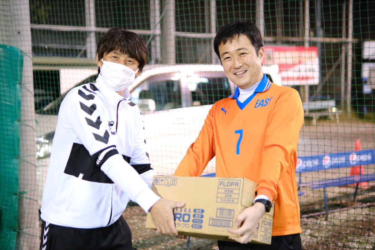 今回の贈呈はこうした動きを知ったスポーツフィールド戸塚の波戸さんが「ぜひ応援したい」と感銘を受けて行ったもので、遠藤選手に24本のスポーツドリンクが手渡された。波戸さんは「フィールドで練習する子どもたちも遠藤選手を見て『足がないのにすごい』など元気をもらっている。ぜひ戸塚から代表選手になってほしい」と檄を送り、遠藤選手は「ありがたい」と感激している様子だった。