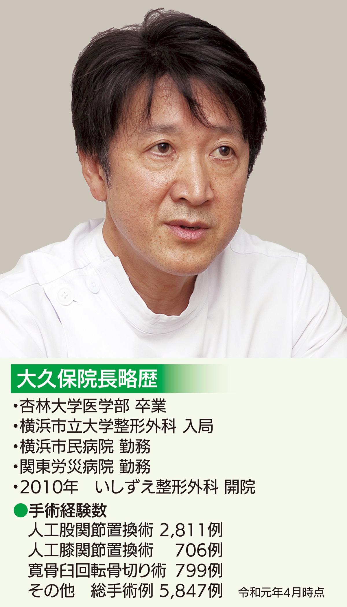 大久保 私は東京出身ですが、変化の少ない住居専用地域でした。それに比べ、戸塚は駅前を始めとし、どんどん変わっています。私は勤務医と開業医両方経験しましたが、開業医をやっていますと、地域の特性がよく解る。街が変貌すると受診する患者さんの疾患も変化しますので医療も変えていかなければいけない。旧泰然としていると、苦しんでいる方を救えないんです。機器をそろえ、技術を改革し、整形外科医として地域の患者さんのケアをしっかりやっていきます。