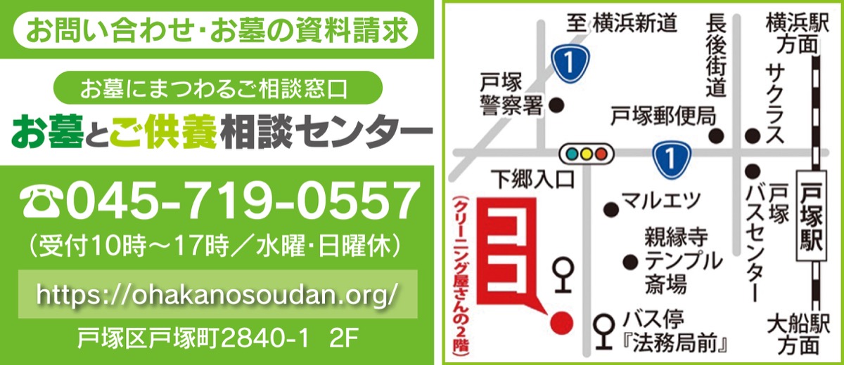 「突然だけど、お墓が必要になった--」。突発的に訪れるのが墓・供養の悩み。予期せぬタイミングの出来事に戸惑うばかりで、相談先すら見つからないという人も多いのでは。そんな時に安心して相談できる場所として、戸塚区内、南戸塚小学校そばにある「お墓とご供養相談センター」をぜひ紹介したい。