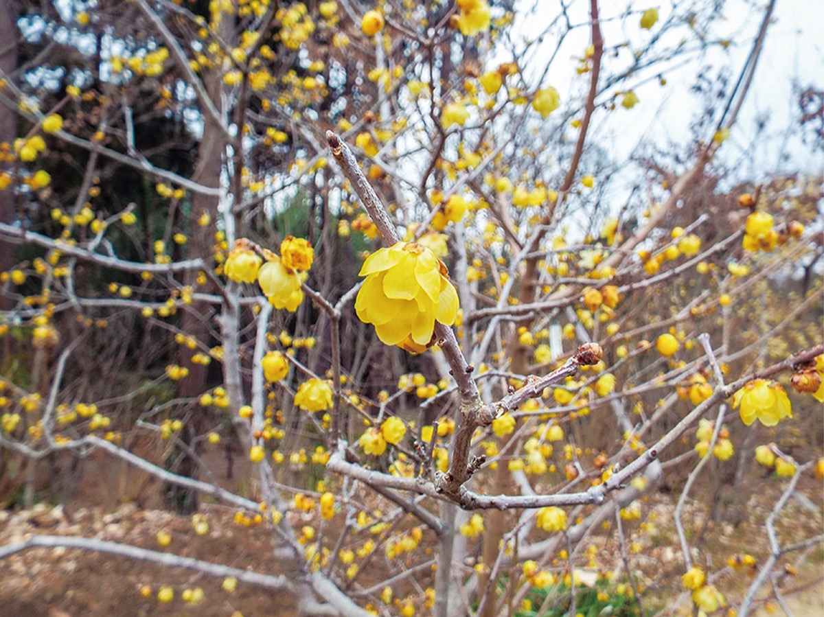 場所は憩いの小庭。ロウ細工のような透き通った花を咲かせ、甘く優しい香りは春の訪れを感じさせてくれます。