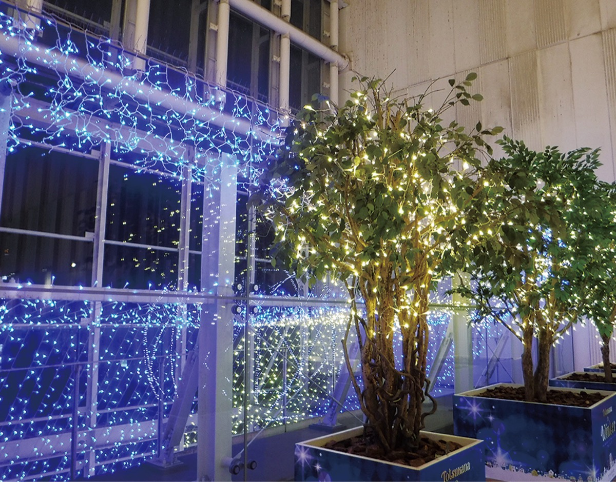戸塚駅西口のトツカーナ5階で2月27日まで、イルミネーションが飾られている=写真。それに伴い2月12日までの毎週土曜日に音楽イベントが開催中だ。