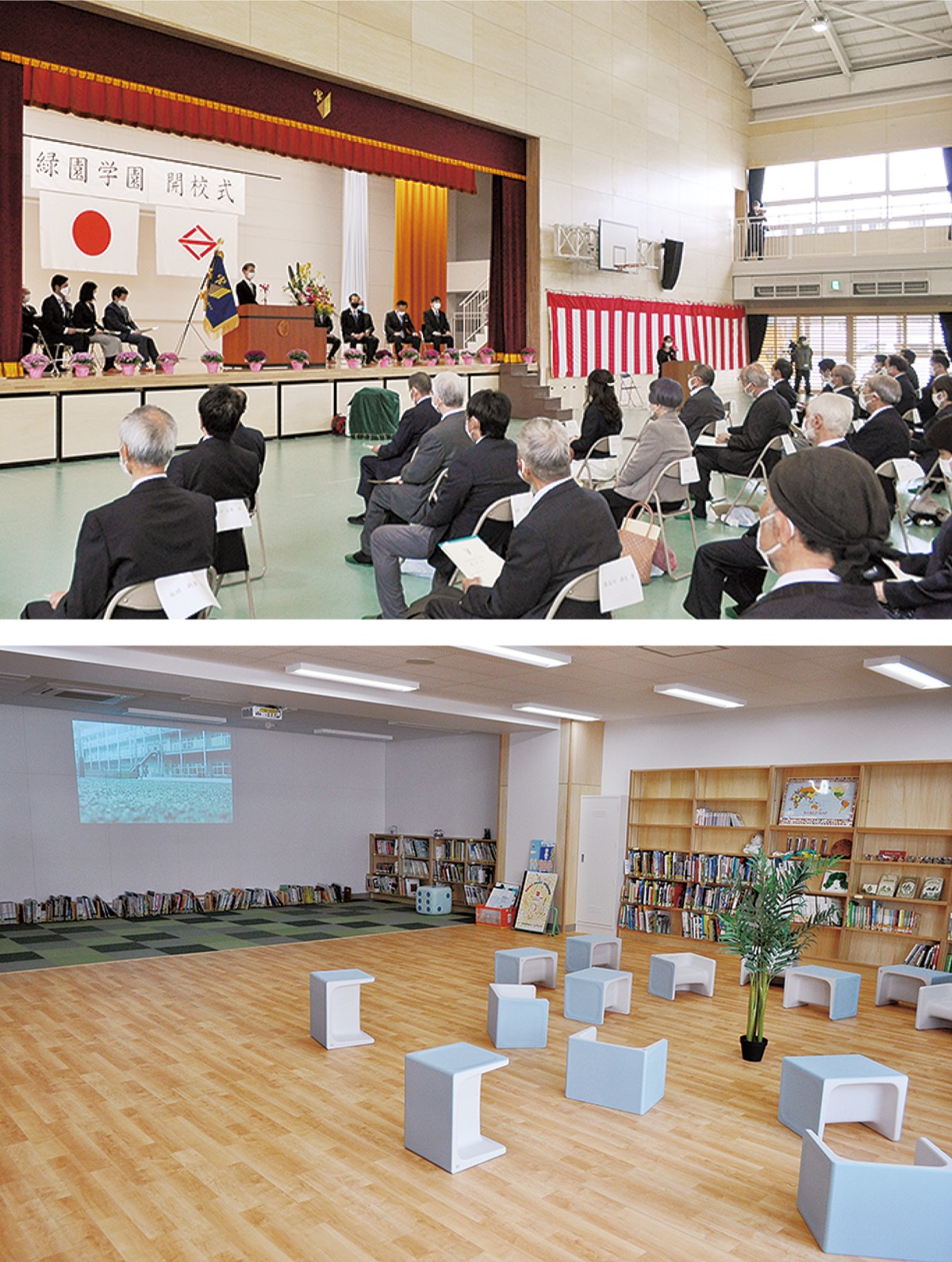 市内3校目となる小中一貫の義務教育学校「緑園学園」=泉区緑園=が、4月1日に開校した。同日行われた開校式では、住民から長年の中学校設置の念願が叶った喜びの声が上がった。