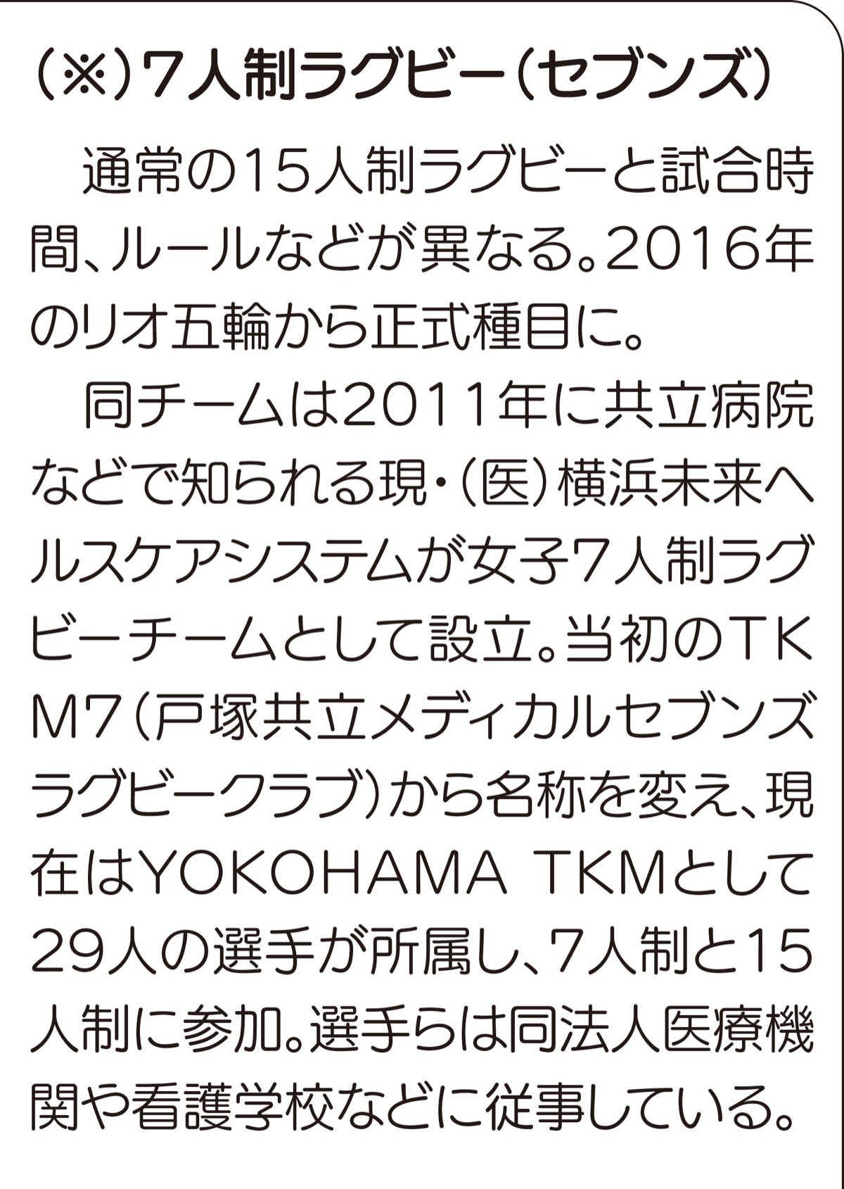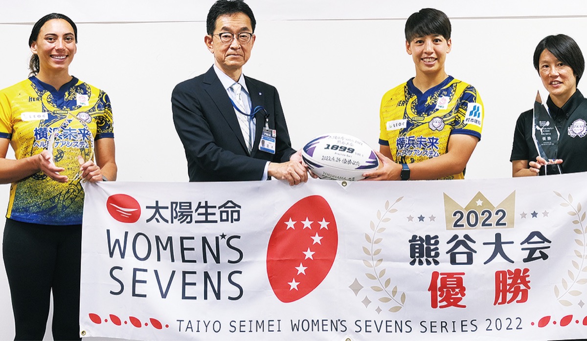 戸塚区に拠点を持つ女子ラグビーチーム「YOKOHAMA TKM」が4月23、24日、埼玉で行われた国内最高峰の7人制ラグビー大会(※)で創部以来の初優勝を果たした。27日には戸塚区役所に國本直哉区長を表敬訪問、惜しみない賛辞が送られた。