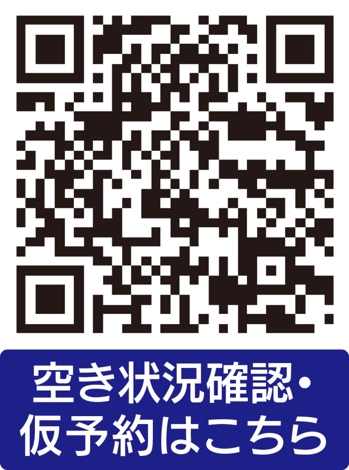 空き状況や仮予約方法などは、二次元コードから。WEBでの仮予約は、使用日の3日前まで受付。集会所の詳細や電話での問い合わせは、管理サービス事務所まで。