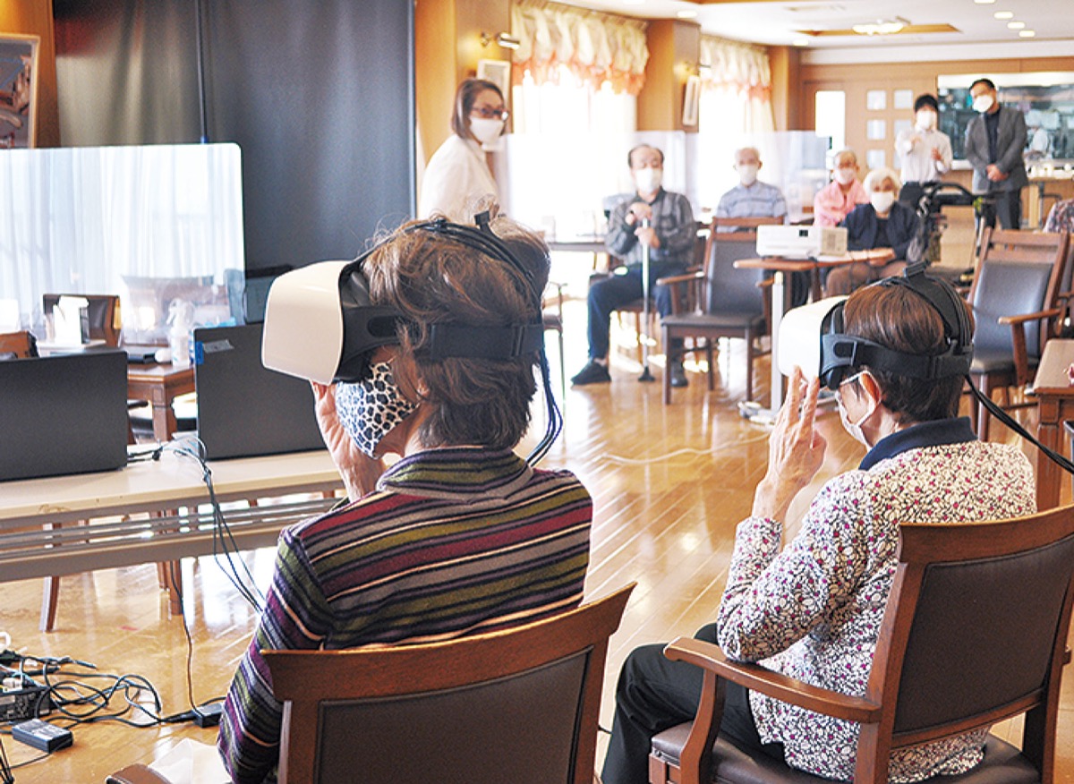 戸塚町の高齢者施設「クラシック・コミュニティ横浜」(西横浜国際総合病院前のバス停降りて目の前)で10月20日、入居者向けのVR(仮想現実)旅行体験企画が行われた。