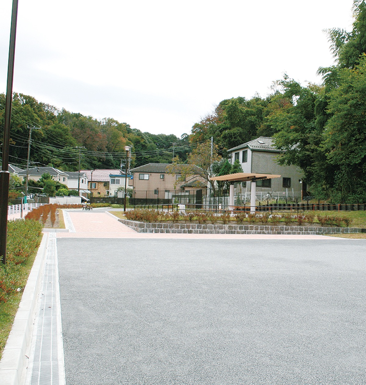 舞岡中学校そばにある「東広場」は約0・2ha。細く砕いた石で舗装された広場が2つと、テーブルなどが設置されている。