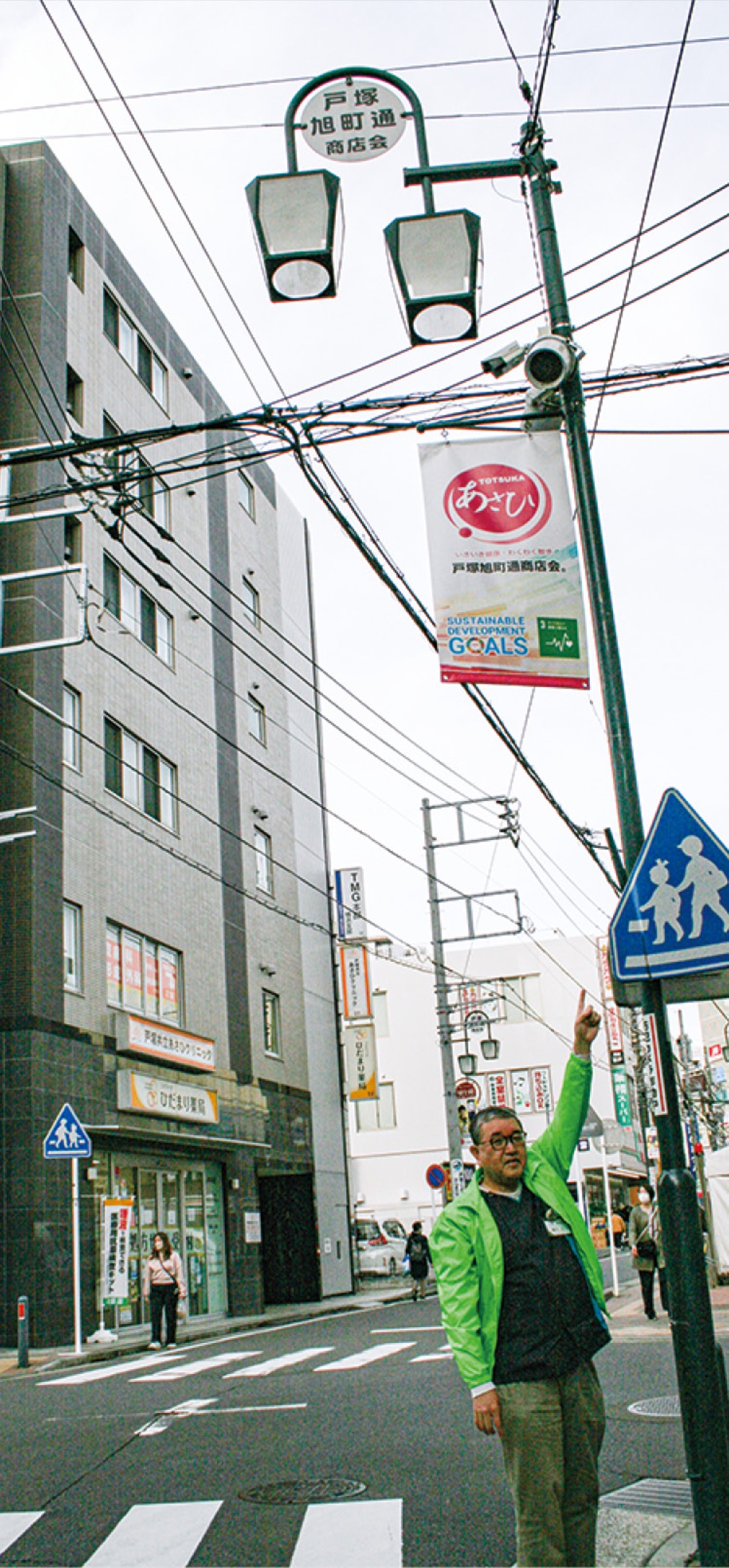 戸塚旭町通商店会が、(医)横浜未来ヘルスケアシステムの協力を受け、商店会内の街路灯20基に新しいフラッグを掲示しています。