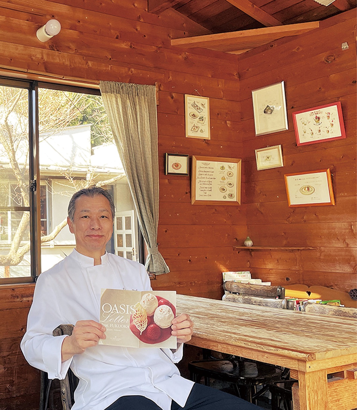 舞岡町の農園・かねこふぁ〜むにある「喫茶あとりえ」で1月29日(日)まで、ホテルで提供する婚礼料理などを描いたイラスト展を開催中。制作者は2019年から横浜ベイホテル東急の総料理長を務める丸山修司さん。