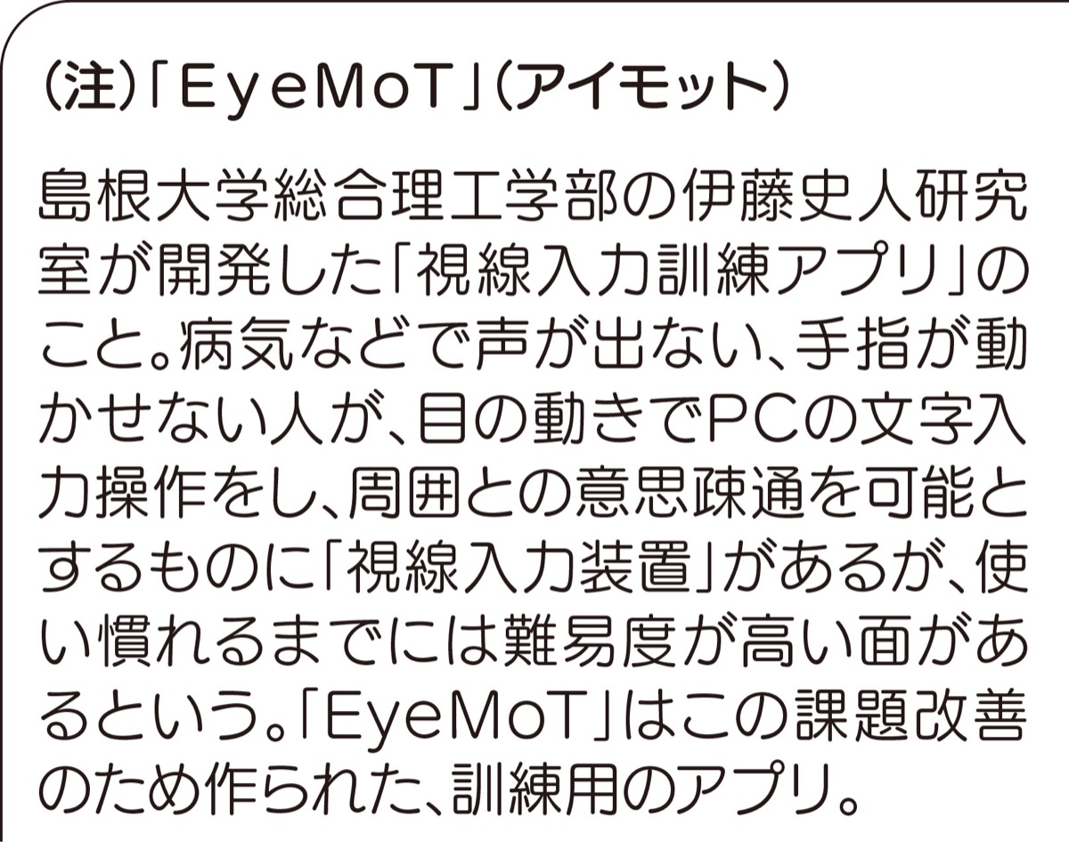 市立東俣野特別支援学校に通う児童の保護者らで構成される団体が、6月に行われる重度障害児・者の支援アプリケーション「EyeMoT」(注)を活用する全国イベントに出場。子どもたちは「料理」作りに初挑戦する。