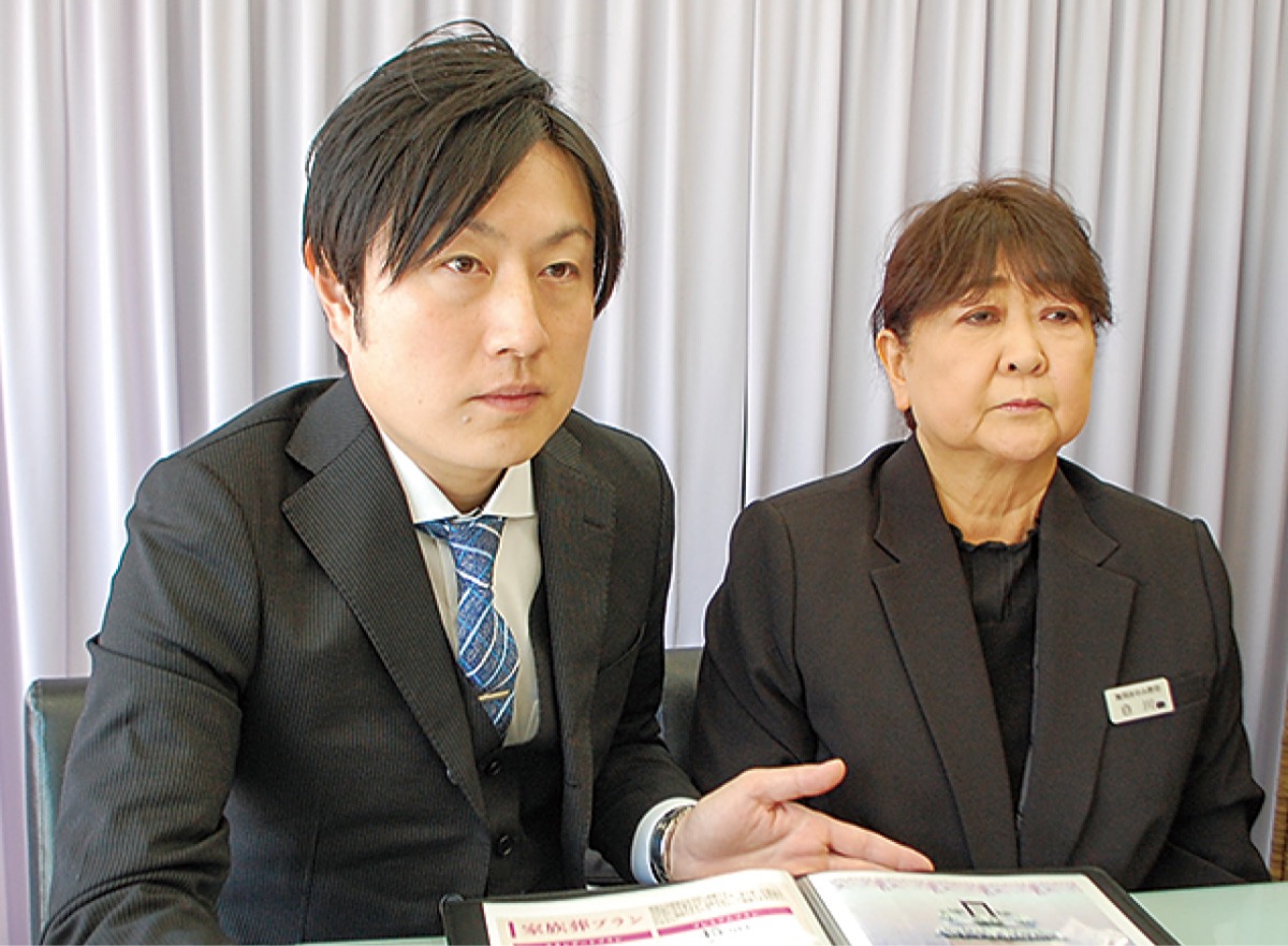創業60年の(株)舞岡あゆみ葬祭。同社が支持される理由は、相談から遺体安置、アフターフォローまで込みの「家族葬38万円〜」プラン。ワンストップで対応してくれるのが心強い。紹介の依頼が多く、地域密着のサービスが好評だ。