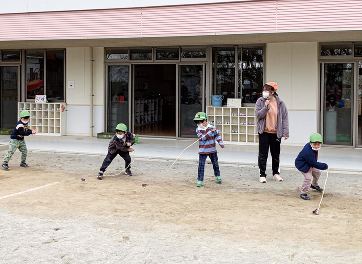 戸塚ふたば幼稚園(吉原義則園長)で先ごろ、毎年の恒例行事「こま回し大会」が行われた。