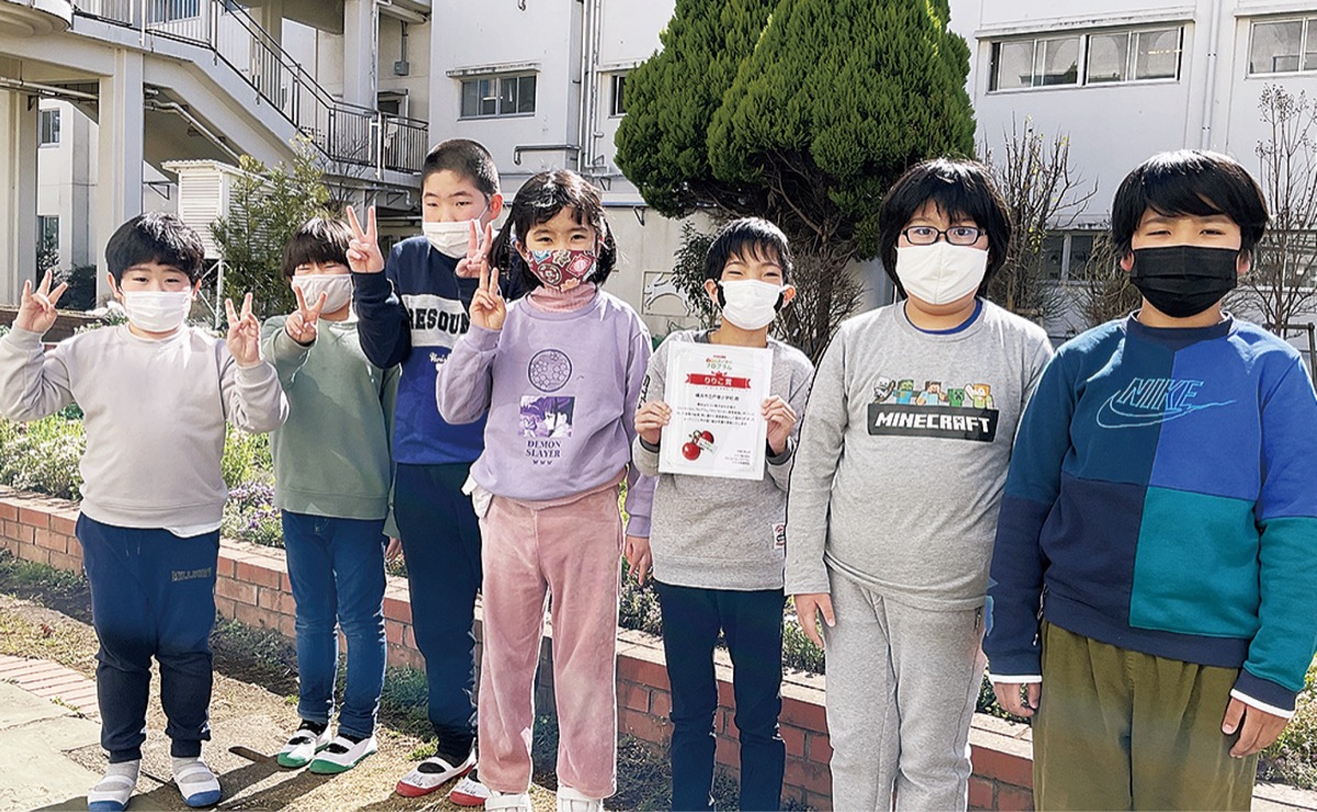 戸塚小学校の個別支援学級「7組」が、初参加したカゴメ(株)の食育プログラムで、全国約1000校・園の中からとくに優秀な取り組みをした3校・園の1つとして表彰された。トマト栽培が、児童の社会参画や地域交流にまで広がったことが評価された。児童は「頑張って育てたからうれしい」と笑顔だ。
