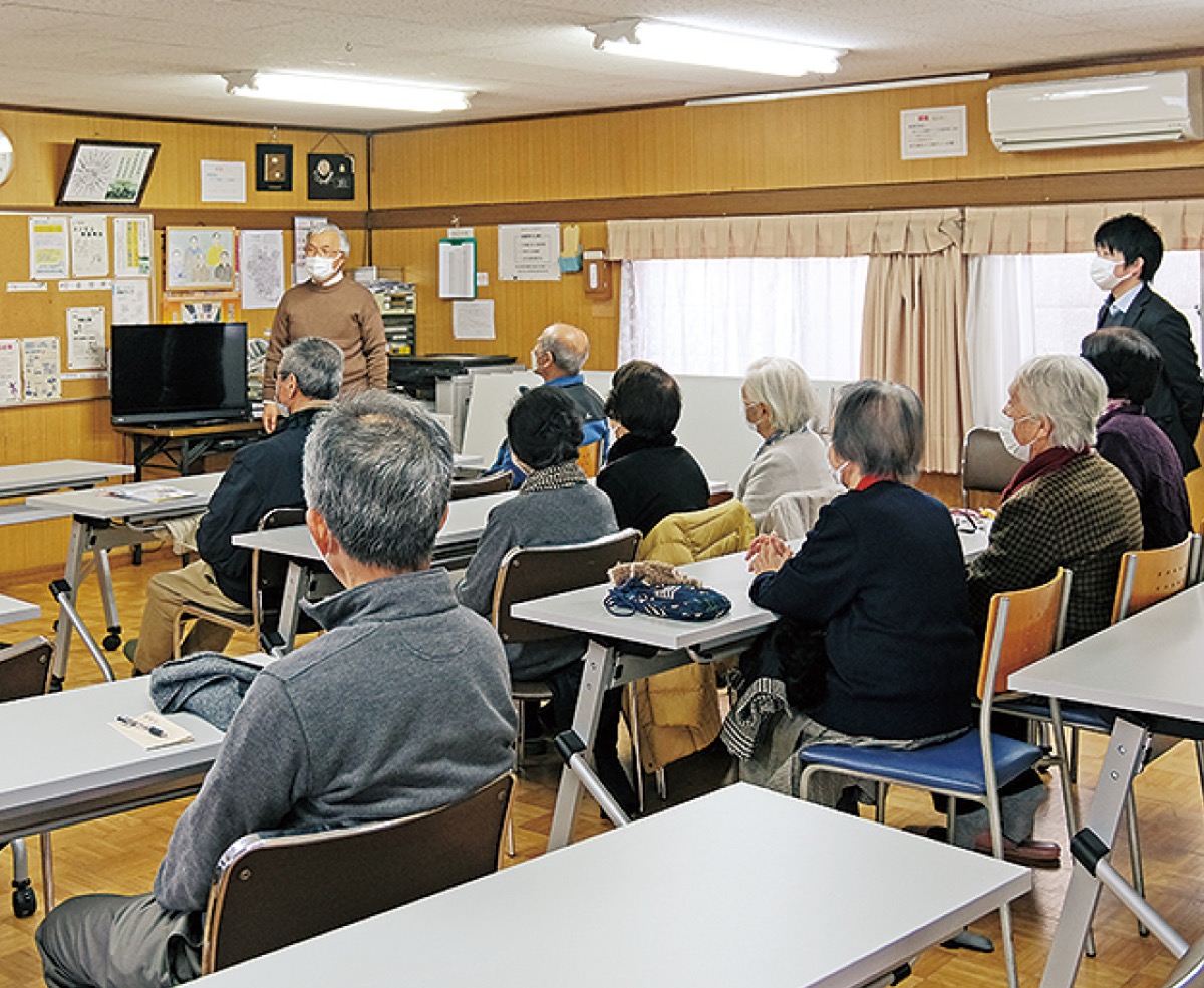 賀寿団地自治会が2月、自治会館で行う「お茶のみ会」で外部講師を招き、緑茶の効能を学ぶセミナーを開催した。