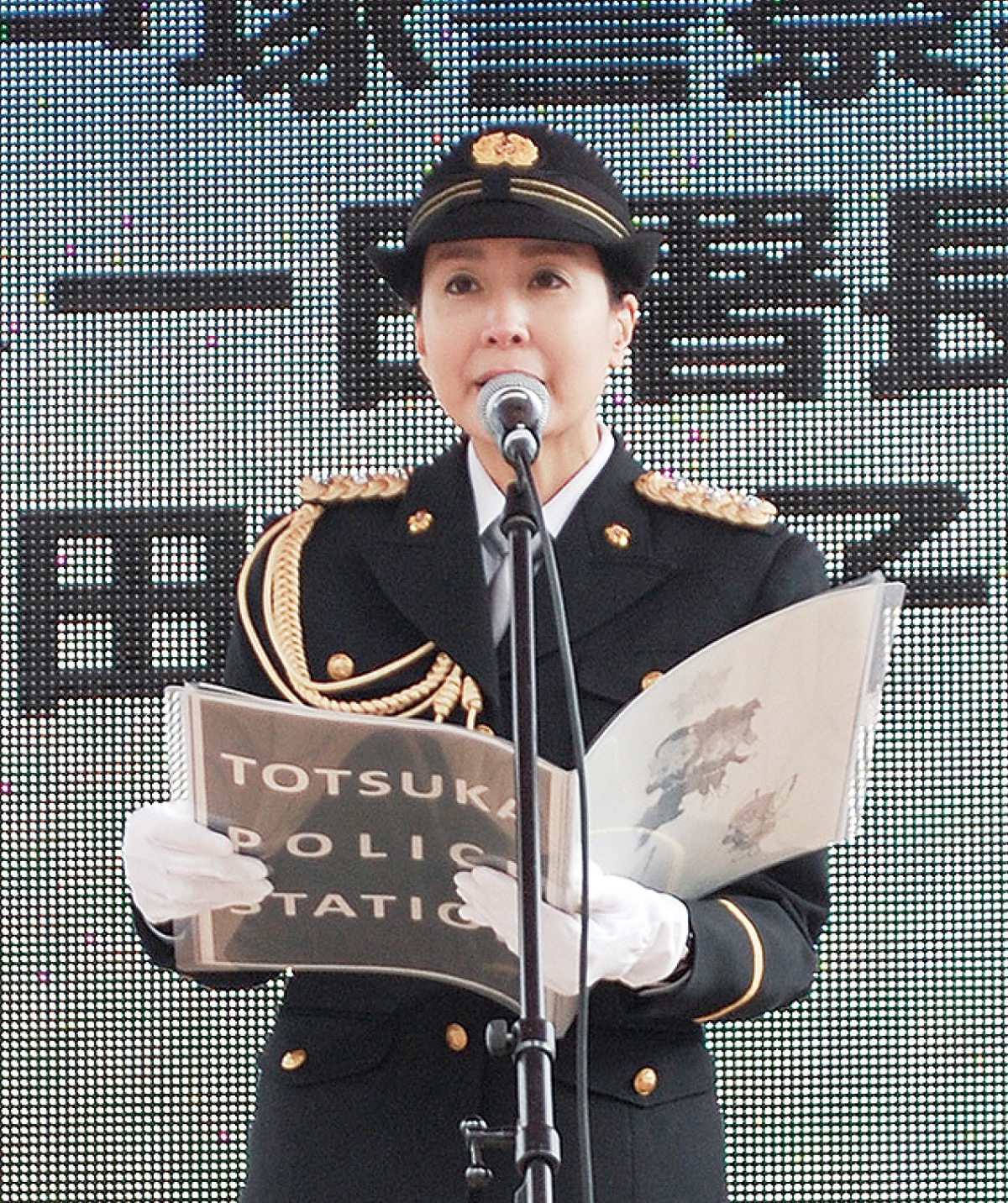 戸塚区ゆかりのフリーアナウンサー内田恭子さんが先ごろ、戸塚警察署の一日署長に就任した。