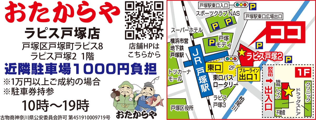 戸塚駅から徒歩約1分の「ラピス戸塚2」に先ごろ、「おたからやラピス戸塚店」が新規オープンした。
