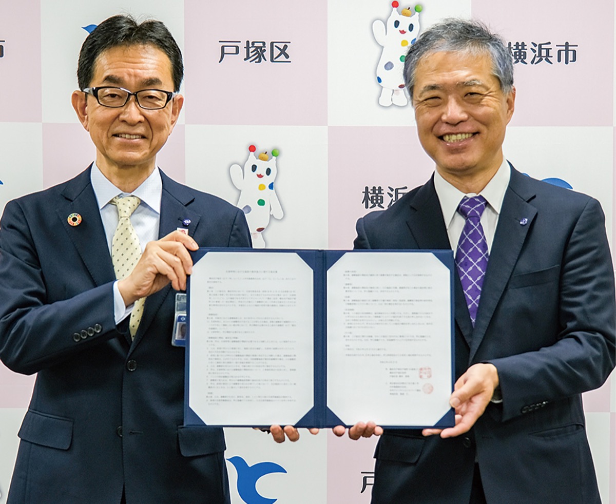締結式では國本直哉戸塚区長と中外製薬の飯倉仁研究本部長が出席した。國本区長は「区の使命は区民の命と暮らしを守ること。今後も中外製薬と連携していきたい」とあいさつ。飯倉本部長は「今協定は地域住民の皆さんの要望から始まったもの」とし、地域に向けて「弊社は戸塚から価値の高い薬を世界中に届けることが使命。微力ながら非常時の地域貢献もしたい。これからも住民に信頼される企業を目指す」と語った。
