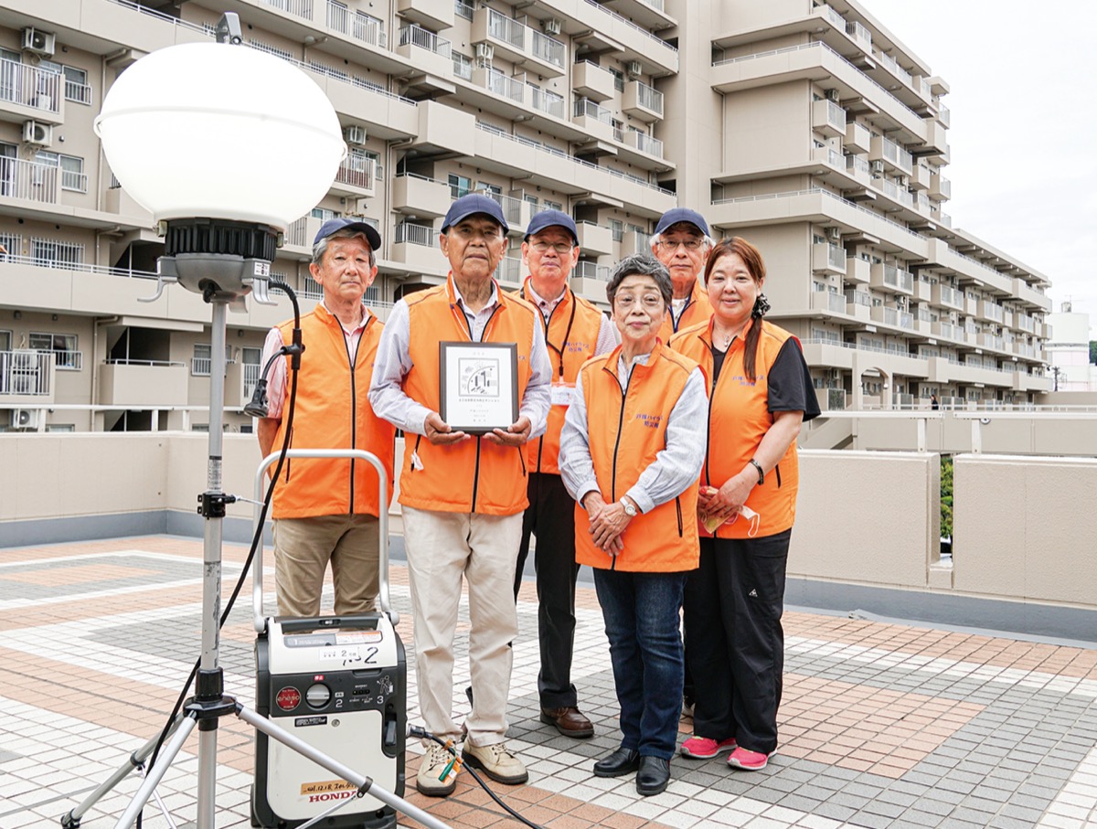 防災組織は、管理組合と自治会が共同して「防災協議会」を2018年に設置。その下部組織として「自衛防災隊」も設ける。同隊は、任期のない自主隊員65人と、任期のある管理組合・自治会の役員33人と合わせて100人近くで組織されている。