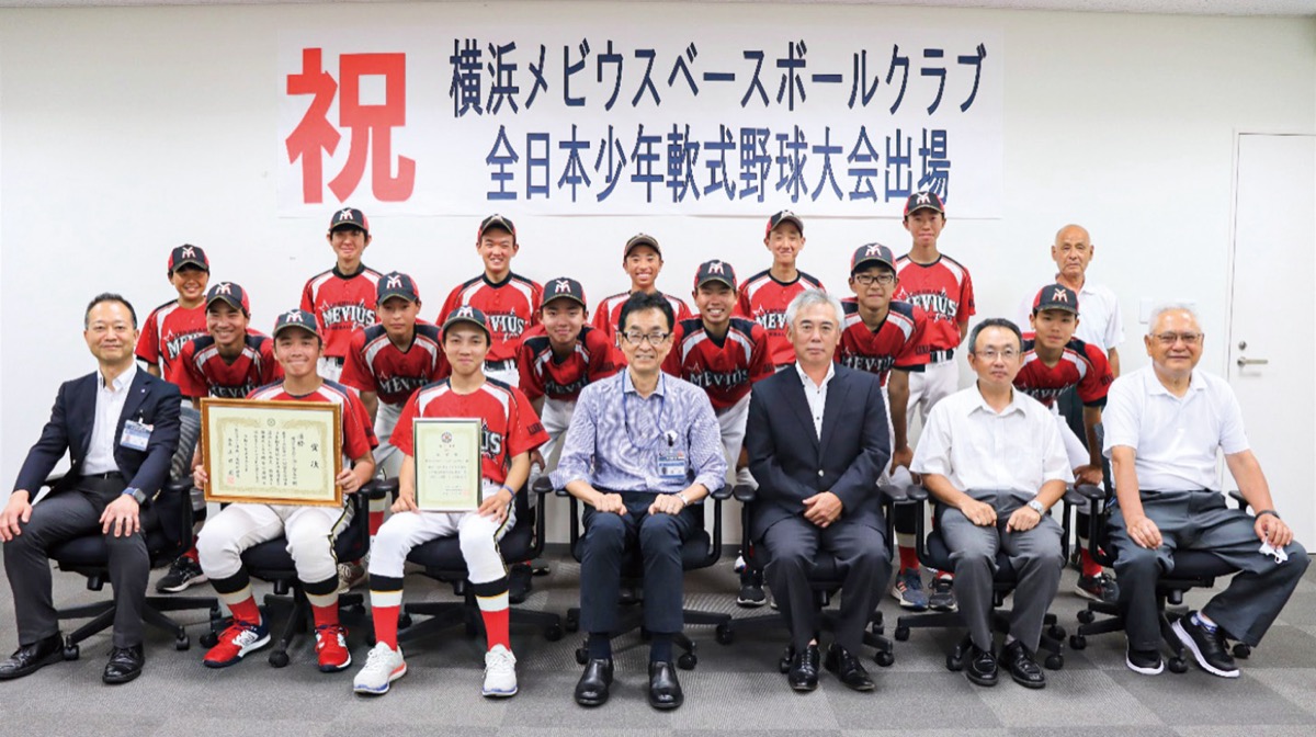 第40回記念全日本少年軟式野球大会に出場する、中学生軟式野球チーム「横浜メビウスベースボールクラブ」が6月28日に國本直哉戸塚区長を表敬訪問した。